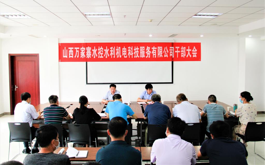 8月3日,萬家寨水務控股集團黨委委員、副總經理蔡開東主持召開山西萬家寨水控水利機電科技服務有限公司干部大會并作講話,水控集團黨委組織部負責同志宣布水控集團黨委關于機電科技公司領導班子的任職決定,機電科技公司黨總支書記、執行董事、副總經理(主持工作)閆向東代表機電科技公司領導班子表態發言。