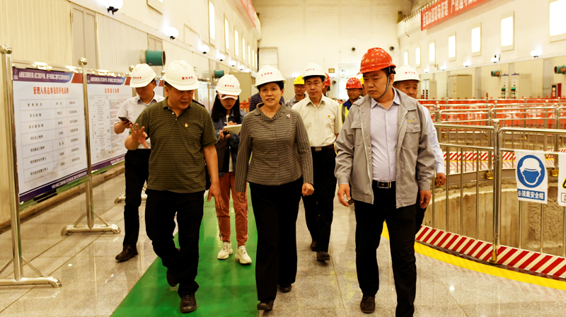 曲孝麗在萬家寨水利樞紐工程現場認真查看電站廠房和引黃工程取水口運行情況,聽取樞紐生產運行及庫區水質匯報。