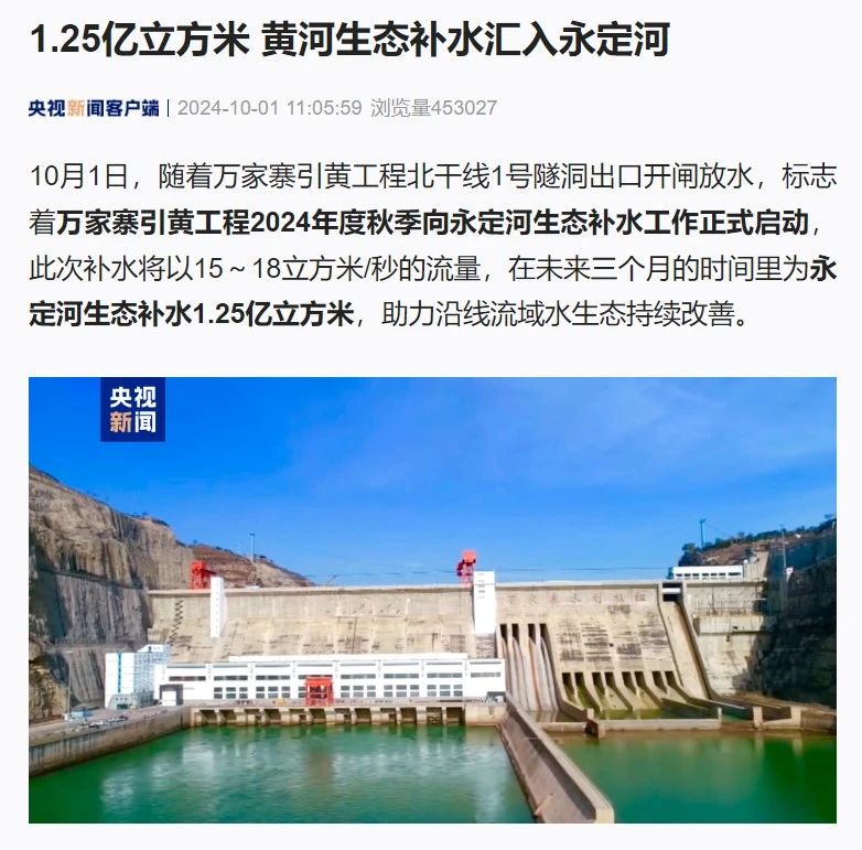截至2024年9月末,萬家寨引黃工程累計(jì)為永定河輸水12.3億立方米,已成為向永定河生態(tài)補(bǔ)水的主力軍,為首都供水安全、實(shí)現(xiàn)永定河全流域綜合治理和生態(tài)修復(fù)提供了重要的水資源保障。