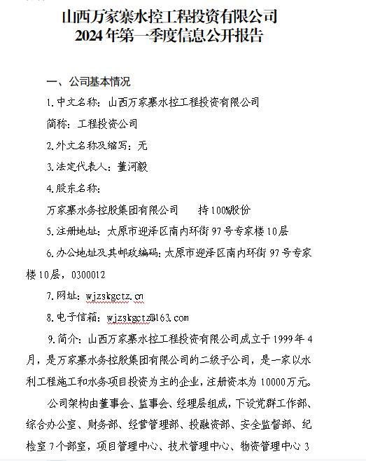 山西省水利水電工程建設監理有限公司2024年第一季...