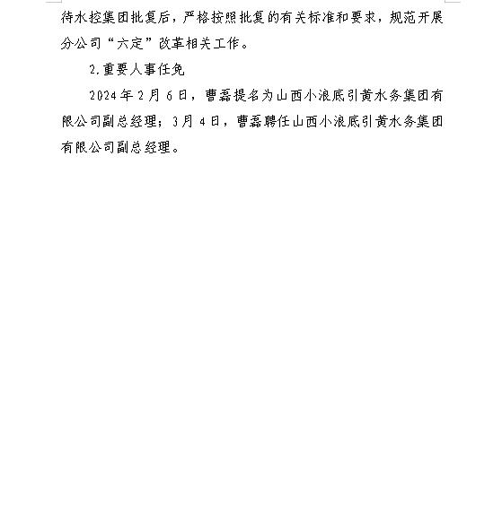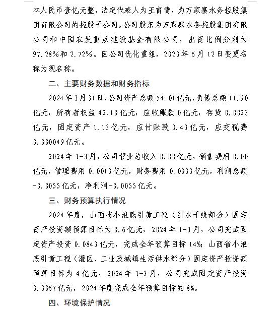 山西水控實業有限公司2024年第一季度信息公開報告