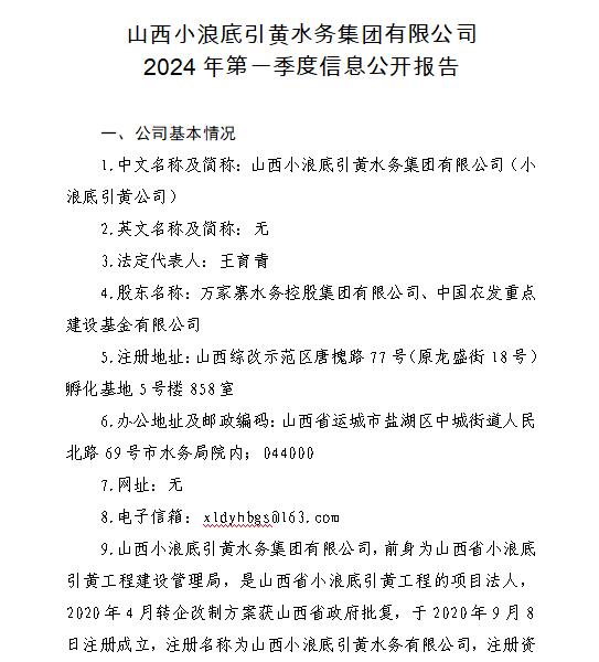 山西汾河一壩管理有限公司2024年第一季度信息公開...