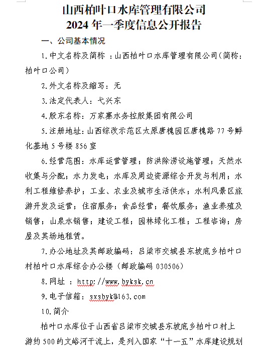 山西汾河水庫(kù)管理有限公司2024年第一季度信息公開(kāi)...