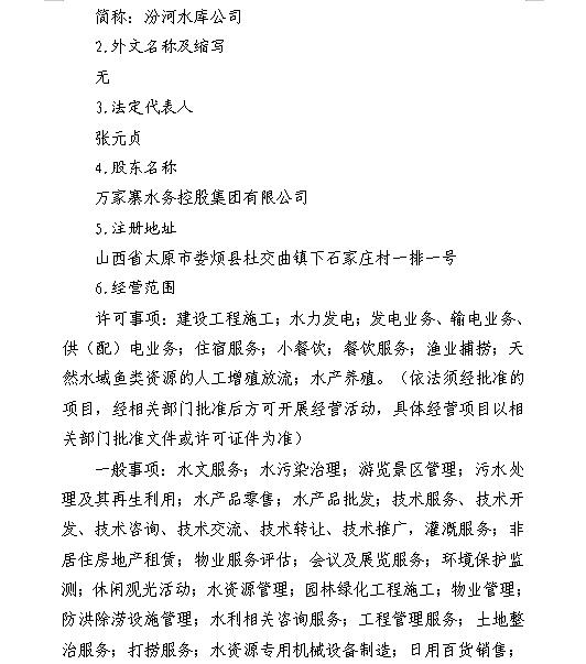 山西柏葉口水庫管理有限公司2024年一季度信息公開...