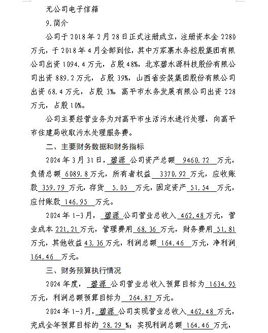 萬家寨水務控股集團有限公司2024年一季度財務等重...