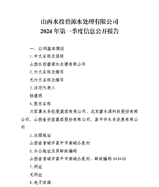 山西汾河水庫管理有限公司2024年第一季度信息公開...