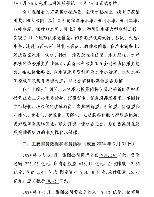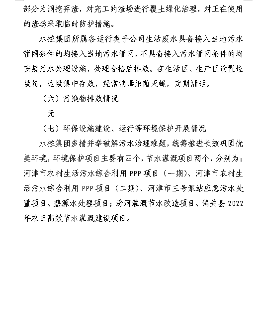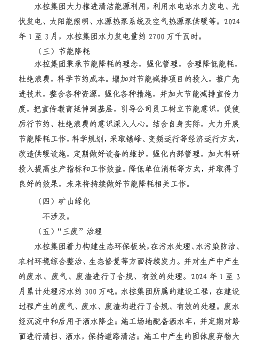 山西水投碧源水處理有限公司2024年第一季度信息公...