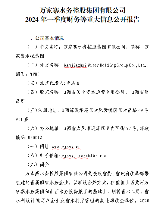 山西水資源研究所有限公司2024年第一季度信息公開...