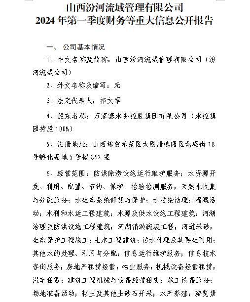 山西東山水務集團有限公司2024年第一季度財務等重...