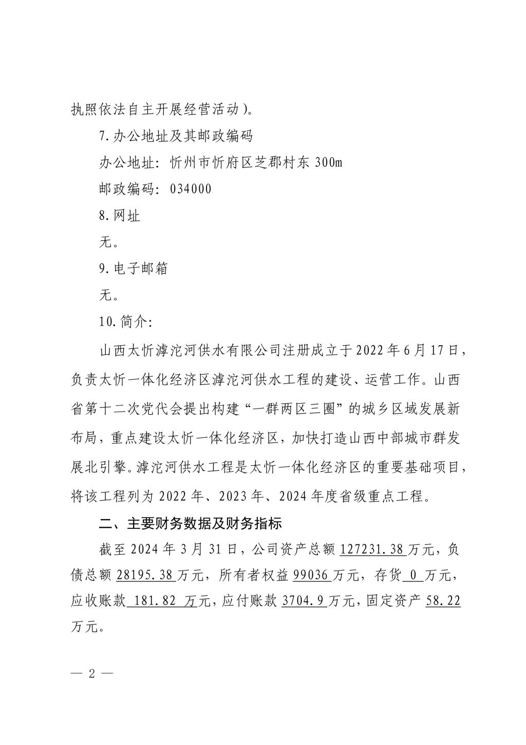 山西太忻滹沱河供水有限公司