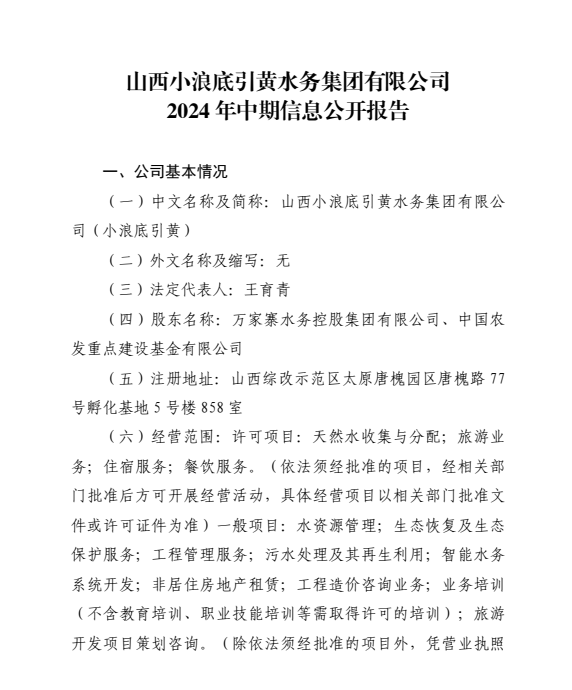 山西小浪底引黃水務集團有限公司2024年第三季度信...
