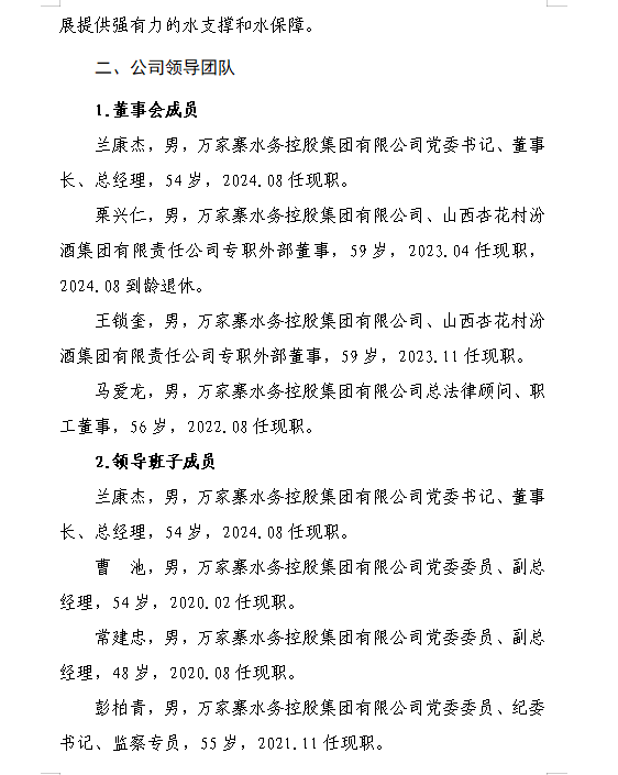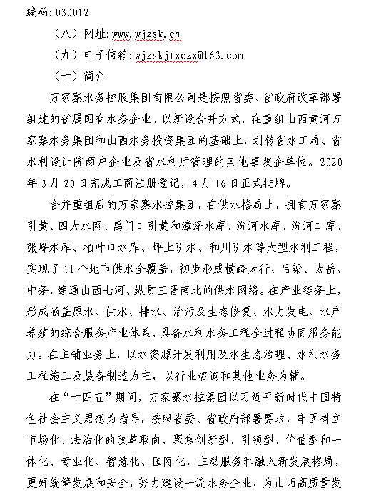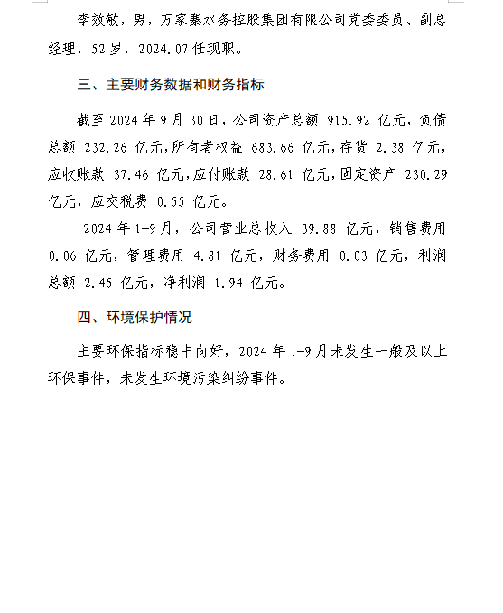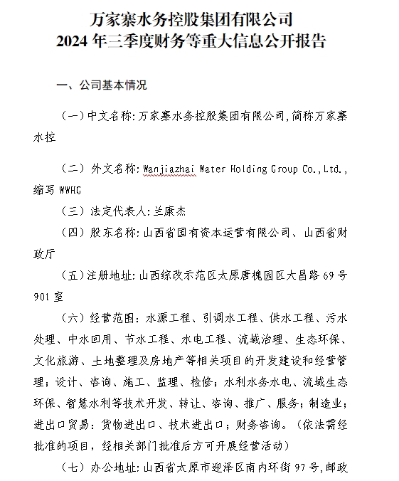 萬家寨水務(wù)控股集團有限公司2024年中期財務(wù)等重大...