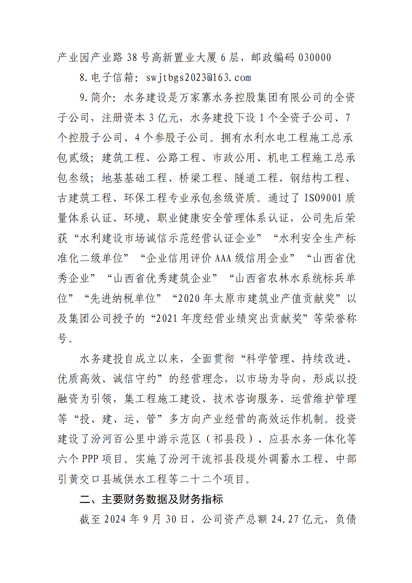 山西太忻滹沱河供水有限公司2024年第三季度重大信...