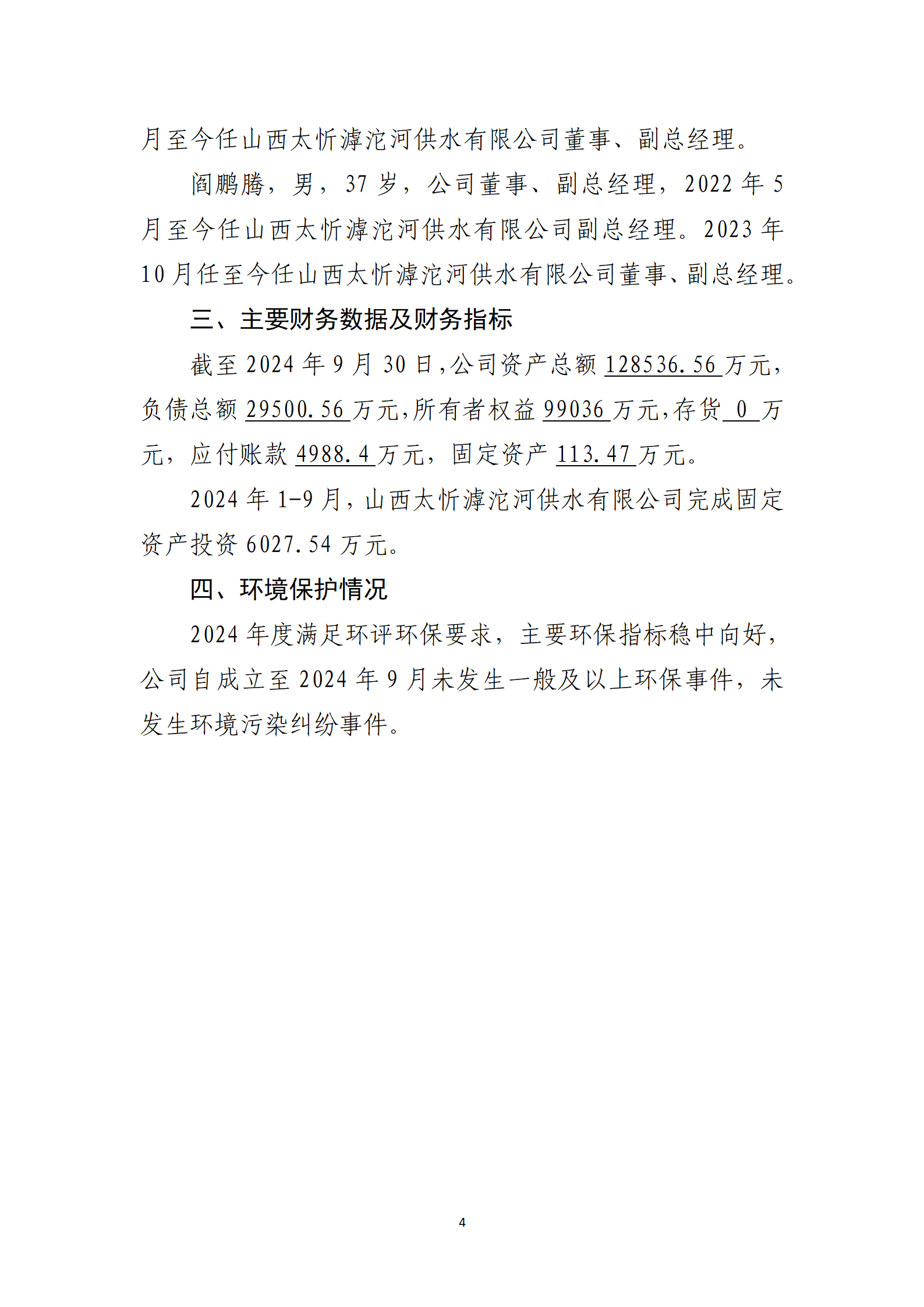 山西水務集團建設投資有限公司2024年第三季度信息...