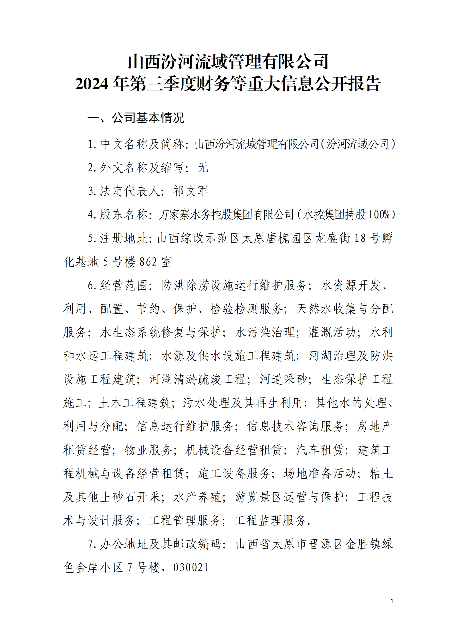 山西沁河水務(wù)集團(tuán)有限公司2024年中期信息公開報(bào)告