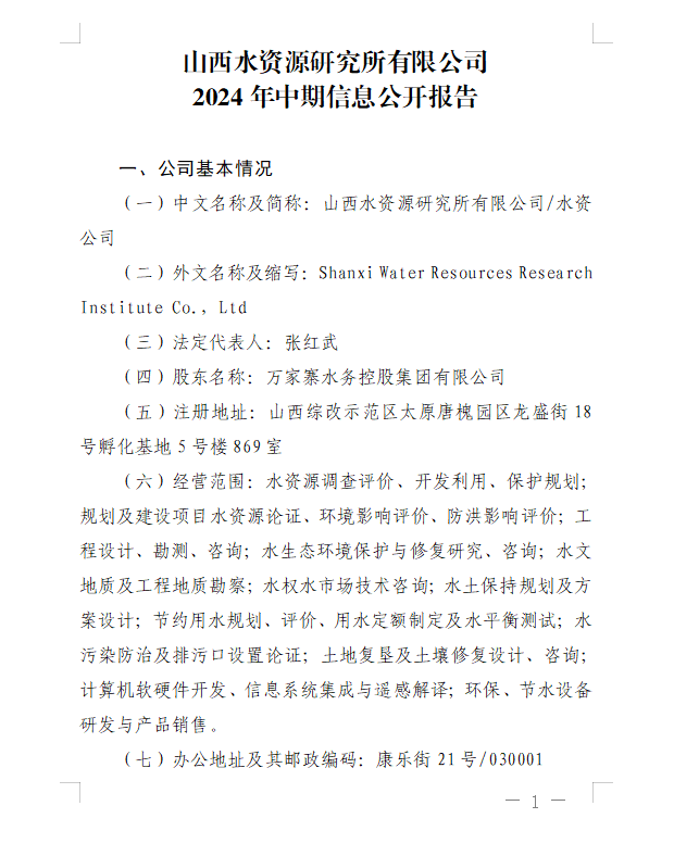 山西水資源研究所有限公司2024年第三季度信息公開...