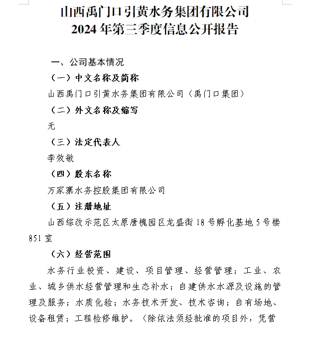 山西滹沱河管理有限公司2024年三季度信息公開(kāi)報(bào)告