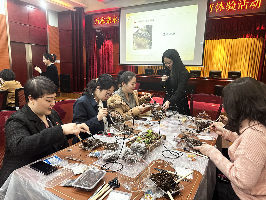 水控集團總部開展女職工普法宣傳活動,為女職工發(fā)放了《中華人民共和國婦女權益保障法》《中華人民共和國安全生產(chǎn)法》等書籍;開展“迎三八”——微景觀盆栽DIY活動,用美育涵養(yǎng)“美麗心靈”。